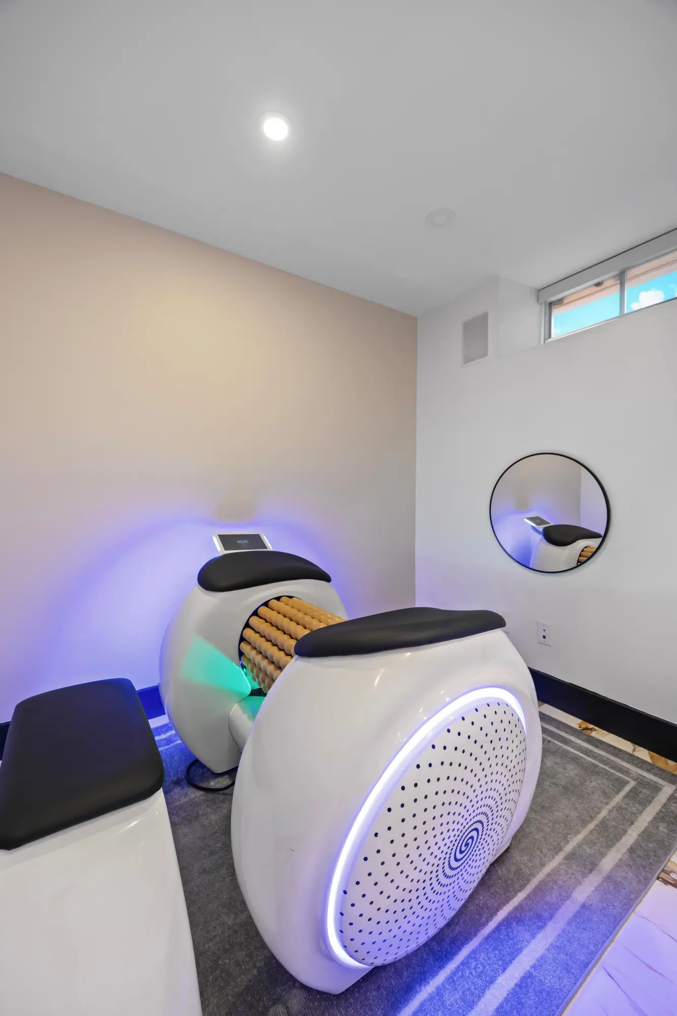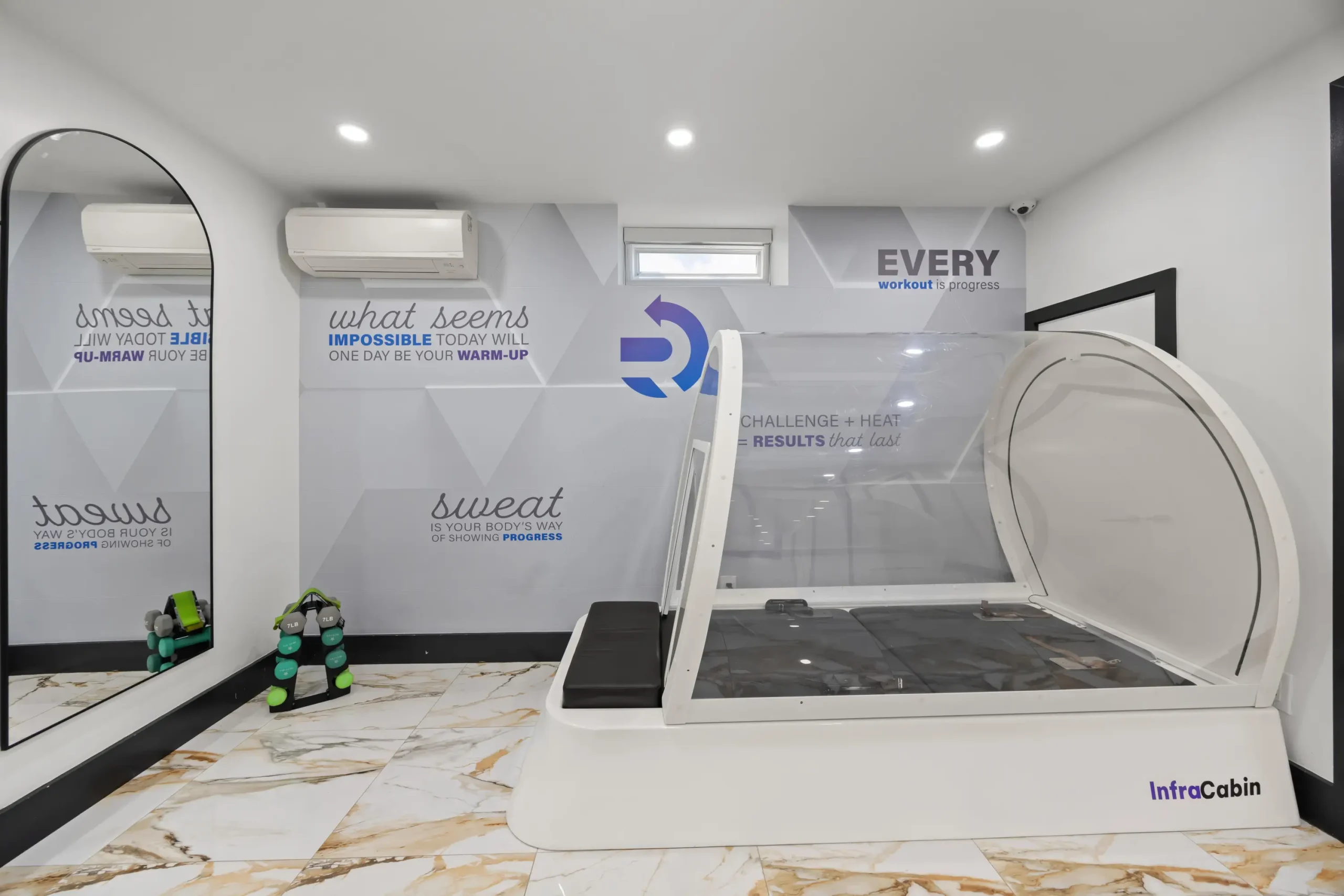 Working alongside a personal trainer, your body is enveloped in a warm cocoon-like heated cabin, doing a total-body custom-designed power Pilates, strength and toning workout. Push hard. Reach goals. In this muscle-relaxed, soothing and comfortable atmosphere.